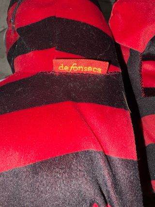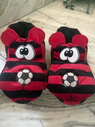 Morbide babbucce a tema Milan - Design a righe rosse e nere. - Dettagli con occhi e pallone da calcio. - Orecchie applicate sulla parte superiore.