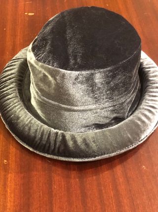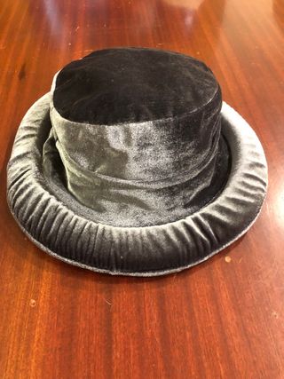 Elegante cappello grigio realizzato in morbido velluto. Fodera imbottita Misure in foto - Materiale: Velluto - Colore: Grigio e nero