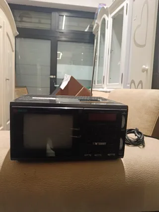 Radio y televisión de estilo vintage. - Diseño retro. - Pantalla de televisión. - Controles de radio y TV.