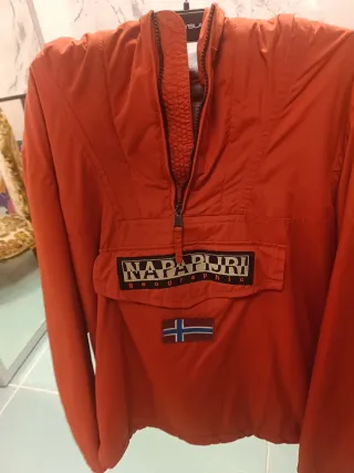 Giacca Napapijri di colore arancione. - Logo Napapijri Geographic sul davanti. - Bandiera Napapijri sul davanti. - Tasca a marsupio. - Cappuccio.