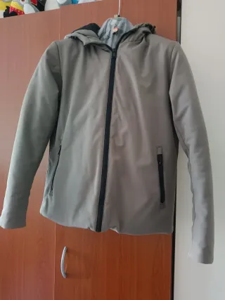 Giubbotto Sorbino con cappuccio e zip frontale. - Zip frontale nera. - Tasche laterali con zip. - Cappuccio integrato. Color tortora il giubbotto e praticamente nuovo se è stato usato 3 volte e assai.