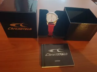Elegante orologio Chronotech con cassa argentata e cinturino rosso. - Design moderno e accattivante. - Completo di scatola originale e manuale. Praticamente è nuovo non l'ho mai usato