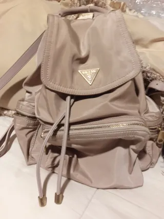 Zaino Guess in un elegante colore beige, perfetto per ogni occasione. - Logo Guess dorato sul davanti. - Tasca frontale con zip. - Chiusura con coulisse e patta. - Spalline regolabili.