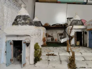 Presepe artigianale che riproduce fedelmente le caratteristiche case di Alberobello. - Dettagli architettonici tipici. - Realizzato con materiali che imitano la pietra e la calce. - Ideale per collezionisti e amanti dei presepi.
