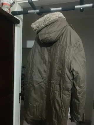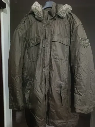 Elegante cappotto parka da uomo, perfetto per le giornate più fredde. Il design è ispirato allo stile militare, con dettagli curati. - Cappuccio con pelliccia sintetica. - Chiusura con zip e bottoni. - Tasche frontali applicate. - Patch decorativo sulla manica.