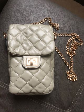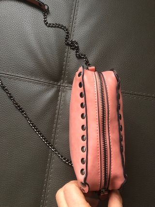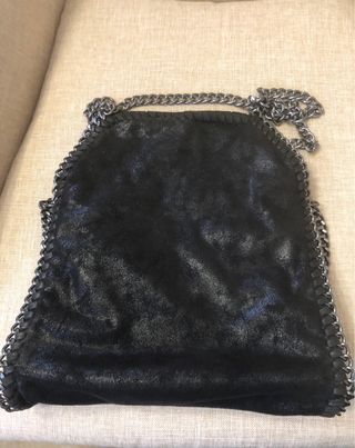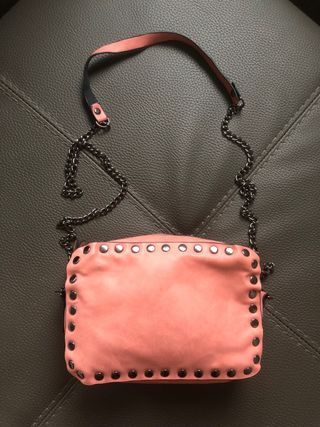 Borsa con finitura in similpelle scamosciata. - Dettagli con catena. - Tracolla a catena.