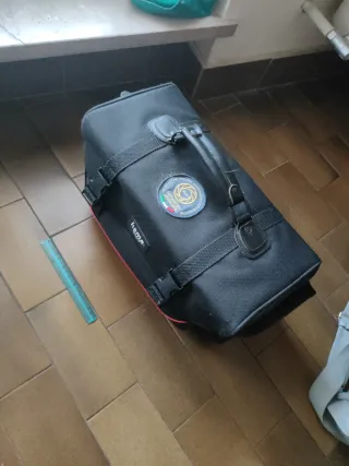 Borsa porta-attrezzatura fotografica di colore nero. - Realizzata in tessuto resistente. - Manico superiore per il trasporto. - Cinghie regolabili con fibbie. - Patch circolare con logo sul fronte.