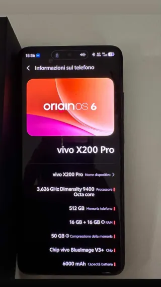 Smartphone Vivo X200 Pro nero versione Cina 16/512GB. - Condizioni perfette con 98% stato batteria. - Garanzia Wondamobile fino a maggio 2027. - Caricabatterie, cavo, cover, protezione camera e adattore inclusi.