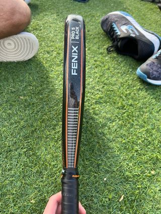 Racchetta da padel Siux Fenix Pro 5 Black, con finitura opaca e design moderno. Acquistata a gennaio, utilizzata due mesi scarsi, vendo per regalo di un’altra racchetta Peso: 368 Grammi Bilanciamento: 27.1 Cm Presenta solo due piccoli salti di vernice nella parte superiore del bordo (vedi foto) che non influiscono assolutamente nel gioco La racchetta ha montato sotto il grip Wilson sublime (top di gamma) e un overgrip bullpadel