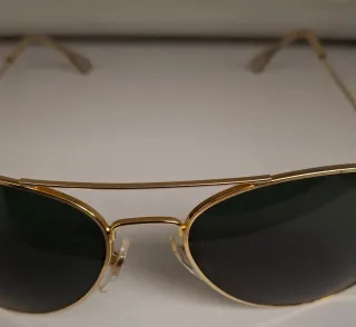 Montatura color oro metallo gold filled, lenti nere/verde, modello Bausch & Lomb autentico anni '70, made in USA. Assenza di marchi su lenti e ponte compatibile con modelli pre'78 dove non veniva applicato il marchio se non all'interno della custodia (Patent Pending). Lenti mm.58 ponte mm.20 lunghezza asta mm.130 peso gr.29. Come da foto in ottime condizioni con custodia originale periodo. Articolo personale, da collezione.