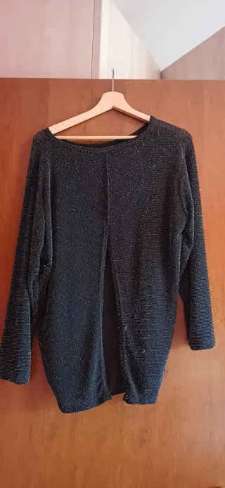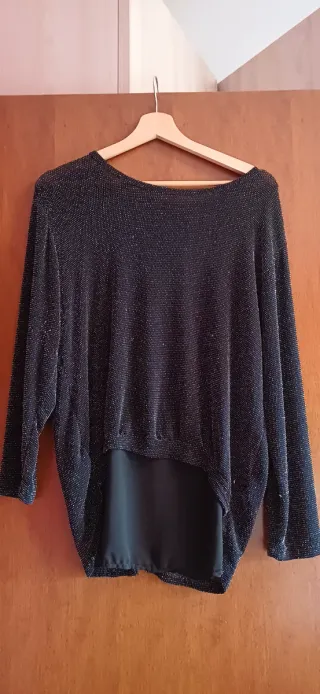 Elegante maglia con fili lamé che creano un effetto scintillante. Il design a strati aggiunge un tocco di raffinatezza. Taglia m/l - Tessuto con fili lamé. - Design a doppio strato.