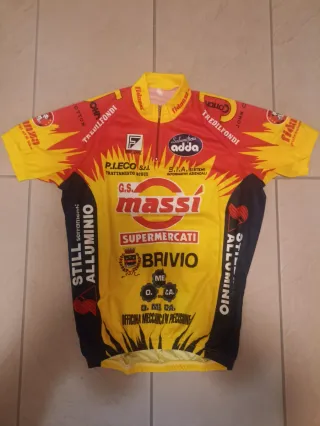 Completo da ciclismo originale Rosti con design vivace nuovo mai usato, modello e qualità in dotazione squadre dilettanti, taglia XL - Maglia a maniche corte con zip. - Pantaloncini con bretelle. - Tessuto tecnico traspirante.