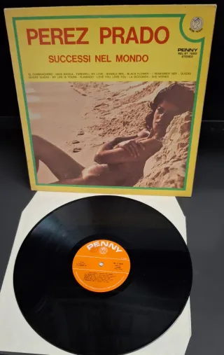 Disco in vinile di Perez Prado, Successi nel Mondo. Etichetta Penny REL ST 19302 made in Italy 1976 genere latin/pop. Cover buona (ingiallimento) vinile ottimo. - El Cumbanchero - Hava Nagila - Farewell My Love - Bumble Bee - Black Flower - I Remember Her - Quizas Quizas Quizas - My Life Is Yours - Flamingo - Love You, Love You - La Gioconda - She Wishes