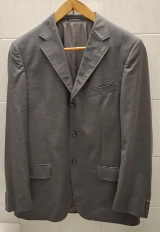 Usato una solo volta, completo uomo, giacca e pantalone, Facis, colore grigio chiaro taglia 52, 100% lana vergine, fodera 100% viscosa Quality Tailored. Misura giacca, spalle cm.46 maniche cm.70 sottoascella cm.56 lunghezza cm.84 Pantaloni lunghezza cm.118 vita cm.45 cavallo anteriore cm.27 cavallo posteriore cm.43