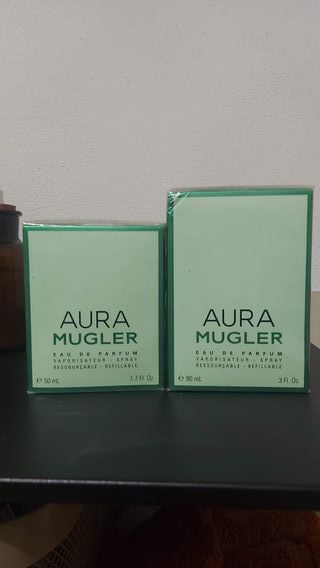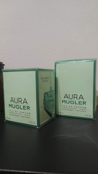 Set di due profumi Mugler Aura Eau de Parfum, uno da 50 ml e uno da 90 ml. Entrambi sono ricaricabili. SET COLLEZIONE: Mugler Aura EDP 50 ml + 90 ml – ENTRAMBI SIGILLATI Fuori produzione. 50 ml + 90 ml • nuove confezioni sigillate Prezzo set più vantaggioso rispetto all’acquisto separato - Fragranza: Aura Mugler - Tipo: Eau de Parfum - Capacità: 50 ml e 90 ml - Caratteristica: Ricaricabile