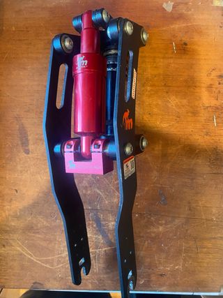 Sospensione anteriore Monorim per monopattini Xiaomi. Colore rosso e nero. Include ammortizzatore. Realizzata in metallo. Spedisco.