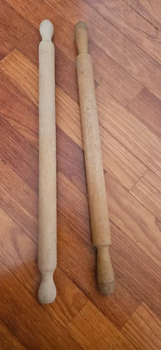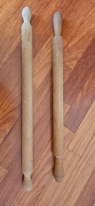 Due mattarelli in legno, che misurano entrambi 60 cm compresi i manici, perfetti per stendere la pasta fatta in casa.