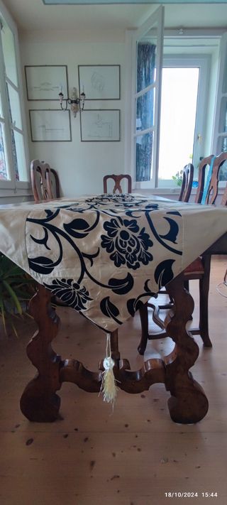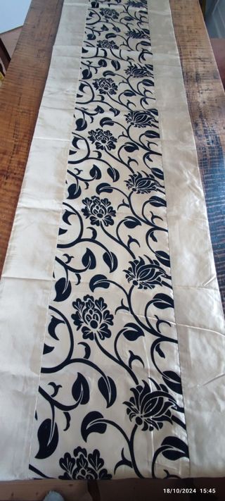 Centrino da mettere sul tavolo oppure si piedi del letto ho nel mio armadio 2 cuscini quadrati 2rettangolari uguali al runner Misure 2.50x0.40 Runner e cuscini sono in seta.