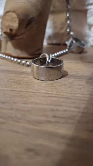 Collana con catena a maglie e ciondoli a forma di anello. - Materiale: metallo argentato. - Design moderno e versatile.