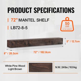 Mensola per camino galleggiante a parete 72 x 8 ''