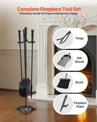 Set di Attrezzi per Camino 5 Pezzi con Supporto