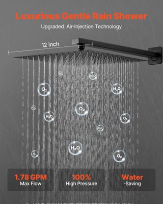 🎖️ Articoli di prima Qualità Colore Nero opaco Materiali principali acciaio inossidabile + ottone + lega di zinco Tipo di filettatura G 1/2 pollice Installazione a parete Forma del soffione doccia quadrato Dimensioni soffione doccia 12 pollici/305 mm Lunghezza braccio doccia 16 pollici/406 mm Lunghezza del tubo 71 pollici/1803 mm Dimensioni del pannello 7,28 x 5,51 pollici/185 x 140 mm Lunghezza della doccia portatile 7,87 pollici/200 mm Portata massima 1,78 GPM (6,7 L/min) Peso del prodotto 7,72 libbre/3,5 kg Braccio doccia + soffione doccia Dimensioni 21,85 x 11,81 x 2,76 pollici/555 x 300 x 70 mm