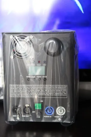 Macchina per creare effetti fumo verticali, ideale per feste, matrimoni ed eventi. - Design compatto e maniglia per il trasporto. - Pannello di controllo con pulsanti. - Illuminazione LED integrata.