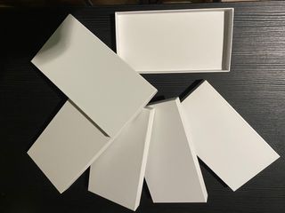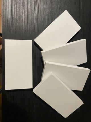 Set di 5 scatoline di cartone rigido. Dimensioni reali cm 9,5 x 17,6 x 1,5. Nuove.