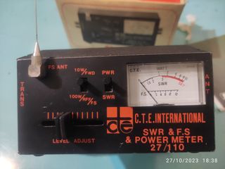 Un piccolo rosmetro/wattmetro/misuratore di campo della CTE INTERNATIONAL, munito del suo antennino per le misurazioni dei campo , nella sua confezione originale. Un gioiellino per gli appassionati radioamatori, quasi un regalo.
