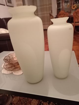 Vendo 2 vasi portafiori verde acqua molto tenue, il grande purtroppo ha una piccola sbeccatura a causa di un trasloco, il medio è perfetto