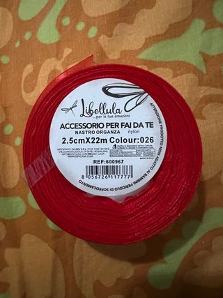 Nastro in organza rosso, perfetto per creazioni fai da te. - Misura: 2,5 cm x 22 metri - Colore: rosso - Materiale: organza