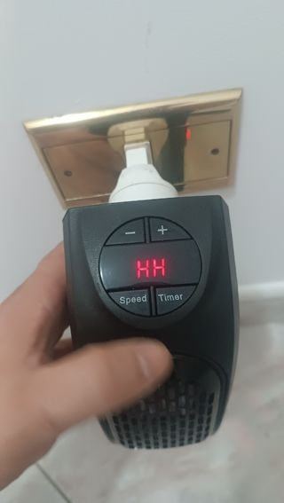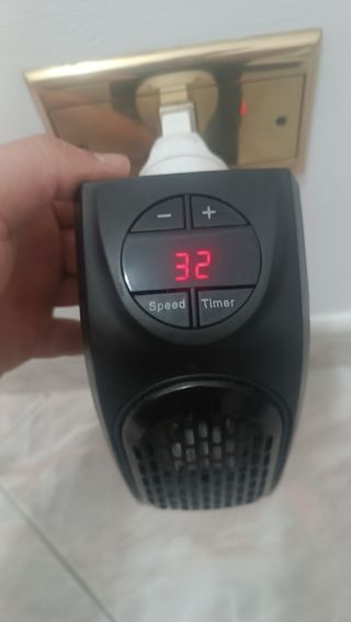 Riscaldatore elettrico compatto da collegare direttamente alla presa. - Display digitale. - Pulsanti per velocità e timer. - Griglia di ventilazione.