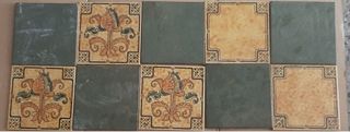 Set di piastrelle in ceramica vintage, perfette per un tocco di stile unico. senza scatola originale deteriorata dal tempo - Motivo floreale centrale. - Bordi decorativi con motivi geometrici. - Finitura opaca. 35 fondo giallo 24 con in fiori 50 verdi dimensioni 15 cm x15 cm semi grès in totale109 piastrelle