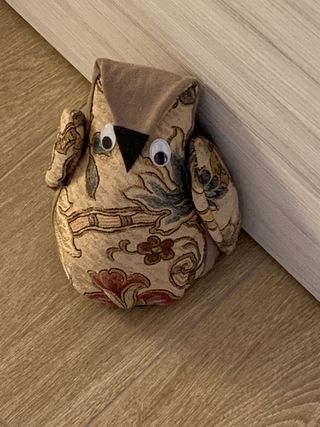 Un simpatico fermaporte a forma di gufo, perfetto per aggiungere un tocco di originalità alla tua casa. - Realizzato in stoffa con una fantasia floreale. - Dettagli con occhietti mobili e becco nero.