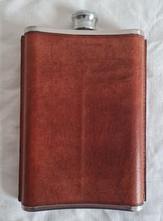 Propongo un articolo particolare della The Bridge, una fischetta per liquidi, presumibilmente liquori, dalla capienza di 8 once che equivalgono a circa 240 ml. Non l'ho mai usata per contenere liquidi ma solo come soprammobile, è fatta in acciaio e ricoperta in cuoio condizioni ottime come in foto. - Logo The Bridge impresso. - Tappo in metallo argentato.