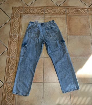 Jeans cargo in denim di colore blu. Presentano tasche applicate sui lati. - Tasche cargo laterali -Taglia EU 38