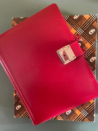 Elegante diario con copertina rigida rossa e chiusura a lucchetto - Copertina rossa. - Dettagli metallici argentati per il lucchetto. - Include una piccola chiave per il