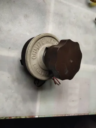 Variac Ohmite Mfg. Co. Chicago, U.S.A. con perilla. - Componente eléctrico. - Fabricado por Ohmite Manufacturing Company.