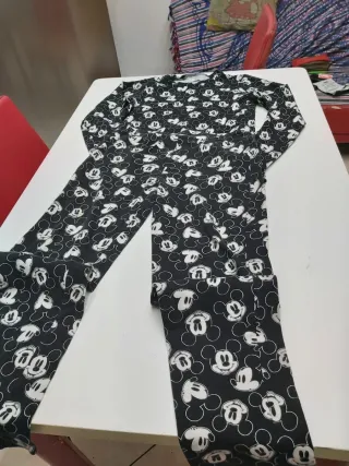 Pigiama intero con stampa di Topolino. - Fantasia Mickey Mouse su sfondo nero. - Maniche lunghe. - Pantaloni lunghi. Una maglia è due pantaloni