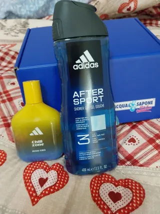 Set regalo Adidas per uomo, ideale per la cura del corpo. - Adidas After Sport Shower Gel: gel doccia 3-in-1 per corpo, capelli e viso, con fragranza fresca ,profumo - Confezione regalo blu Adidas.