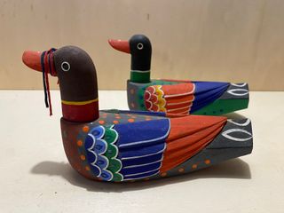Coppia di anatre decorative in legno, tipiche della tradizione coreana. note come won-ang seteu, simbolo tradizionale di fedeltà coniugale, sincerità e amore eterno. - Dimensioni ognuna 17 x 9 x 5,5 cm. - Realizzate in legno dipinto a mano. - Dettagli colorati vivaci. - Ideali come soprammobile o bomboniera.