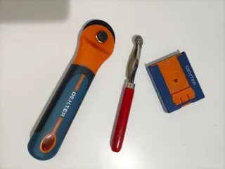 Set di attrezzi Dexter per il taglio. - Taglierina con lama circolare e lame di ricambio - Tracciatore con rotella dentata per la marcatura cartamodello