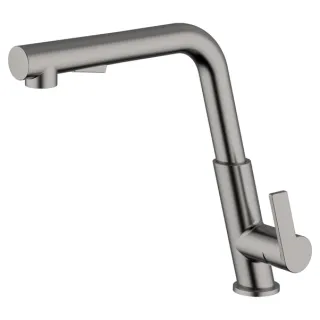 Miscelatore da cucina Teorema serie Pisa con finitura nickel e bocca alta squadrata, ideale per lavelli moderni. Dotato di doccetta estraibile a 2 getti per una maggiore praticità nelle operazioni di lavaggio. Cartuccia da Ø 25 mm per un controllo fluido e preciso dell’acqua. Design funzionale e resistente, adatto all’uso quotidiano. Prodotto nuovo, disponibili più pezzi.