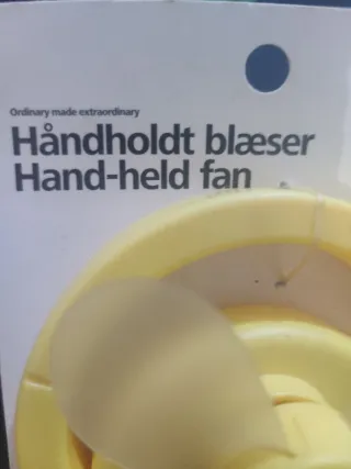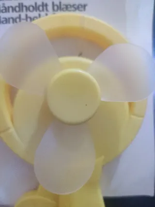 Piccolo ventilatore portatile di colore giallo. - Design compatto e leggero. - Pale traslucide.