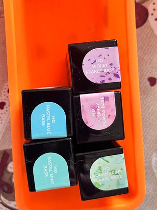 Abbasso a 35€ Vendo 5 basi colorate di cui tre con flakes all’interno. Passione unghie. Aperte per fare la foto, neanche stese su tip. Vendo a 50€ non trattabili in quanto nuove e nuove costano 12/13€
