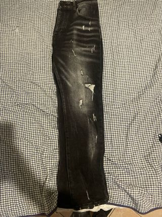 Jeans da uomo in denim nero con un look vissuto e dettagli strappati. - Vestibilità slim. - Effetto used. - Tasche anteriori e posteriori.