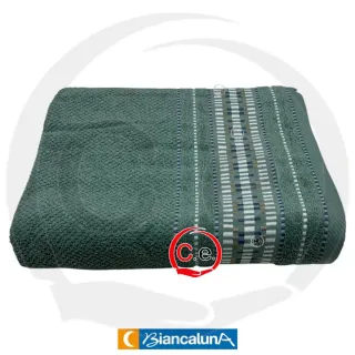 Set di tre asciugamani in spugna di puro cotone. - Tessuto 500 gr/m2. - Misure: Telo 100x150 cm, Viso 50x100 cm, Ospite 40x60 cm.