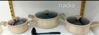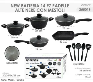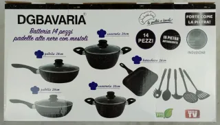 NUOVA BATTERIA 14 PEZZI PADELLE ALTE E TEGAMI CON MESTOLI😍😍🔝🔝 ADATTA PER TUTTI I PIANI INDUZIONE💣💣🔝🔝 IN PIETRA ANTIADERENTE😍😍 CON BISTECCHIERA💣💣 DGBAVARIA🇮🇹😍