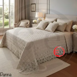 Trapuntino Anastasia in raso satin con 2 cuscini arredo coordinati e pizzo in organza ricamata morbida al tatto Il raso Satin dona al trapuntino una sensazione immediata di morbidezza e fluidità. La sua superficie leggermente luminosa cattura la luce in modo naturale, facendo risaltare il calore e dando al letto un aspetto sempre ordinato e raffinato. L’orlo rifinito con rebrodè ricamato è il dettaglio che trasforma il trapuntino in un vero elemento d’arredo. Il risultato è un equilibrio perfetto tra semplicità e preziosità, che richiama una lavorazione sartoriale e aggiunge un tocco romantico e decorativo senza risultare eccessiv