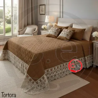 Trapuntino Lilith Con doppia Rouche, pizzo in organze & coppia di federe per guanciali in omaggio in coordinato Colori disponibil; • Salvia • Tortora • Bianco • Grigio • Panna • Cipria Lavorazione artigianale, produzione interamente italiana 🇮🇹